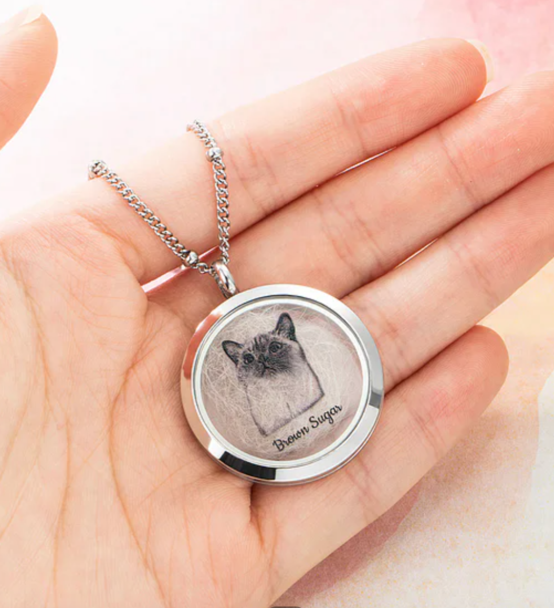 This elegant glass locket is designed to preserve a small piece of your furry friend—whether it’s their fur, ashes, or a cherished photo—keeping them forever close to your heart.