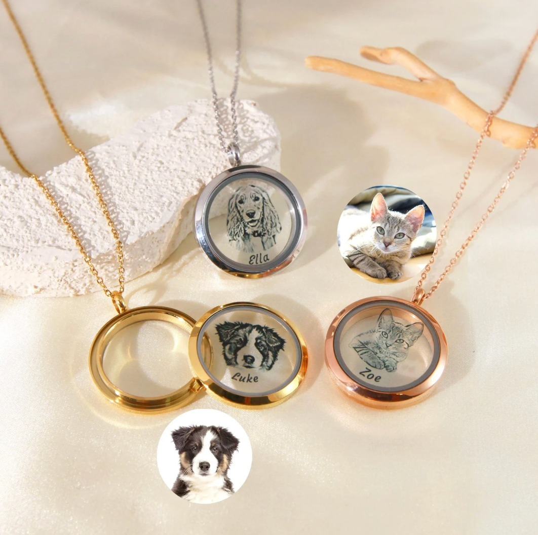 Custom Pet Memorial Locket – Personalized Glass Pendant for Fur, Ashes & Photo